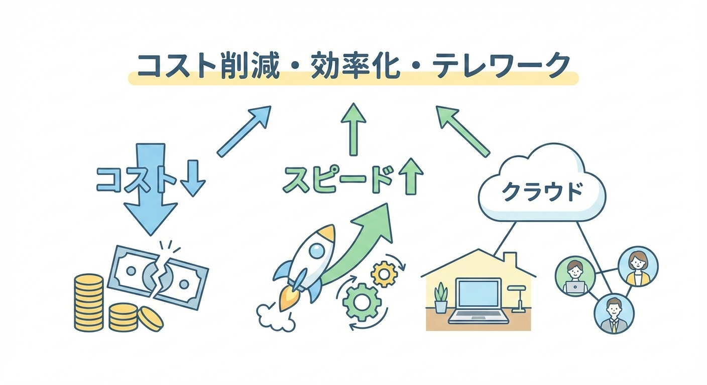 DXにおいてデジタル化はあくまでも一つの手段です。デジタル技術の活用を通じ、業務体制や社会への取り組み方そのものを変えていくことが最終目標となります。そしてデジタル技術の導入による最もシンプルなメリットは各種の人的・物的コストの削減でしょう。