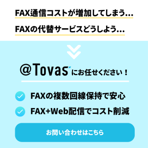 コクヨの電子帳票配信システム『@Tovas』は、請求書や納品書などの帳票書類を電子化して送付できるクラウドサービスです。郵送やFAXによる送付にも対応可能で、取引先によって送付方法を選べます。