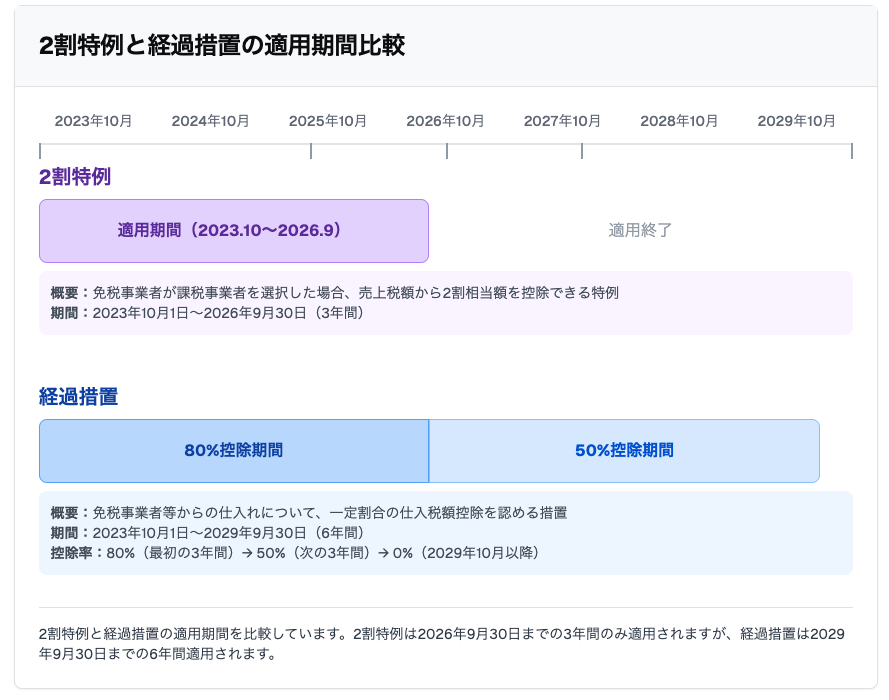 経過措置は本則課税(一般課税)の計算に影響しますが、簡易課税選択者や2割特例適用者は影響を受けません。自社がどの制度を選択しているかによって対応が異なります。