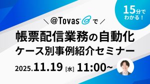 | タイトル | 15分でわかる!@Tovasで帳票配信業務の自動化〜ケース別事例紹介セミナー〜 |