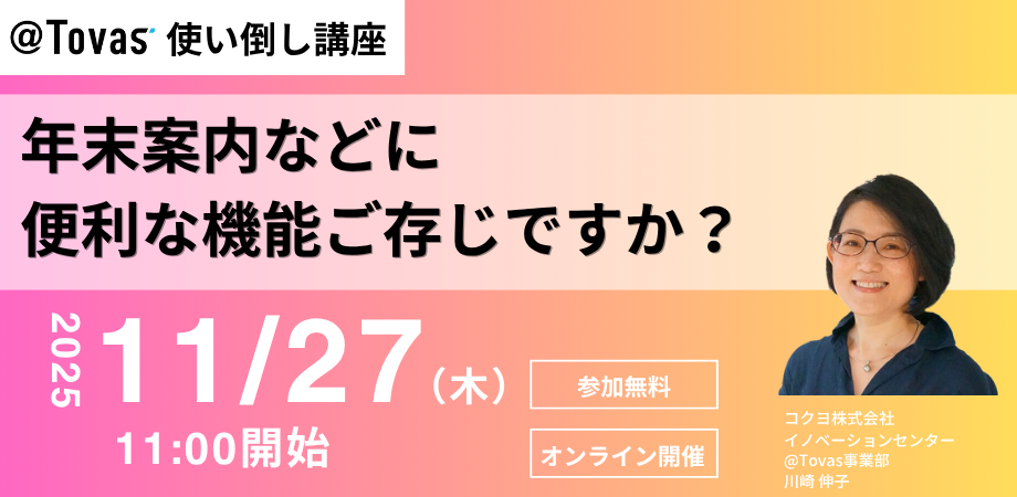 | タイトル | @Tovas使い倒し講座~年末案内などに便利な機能、ご存じですか?~ |
