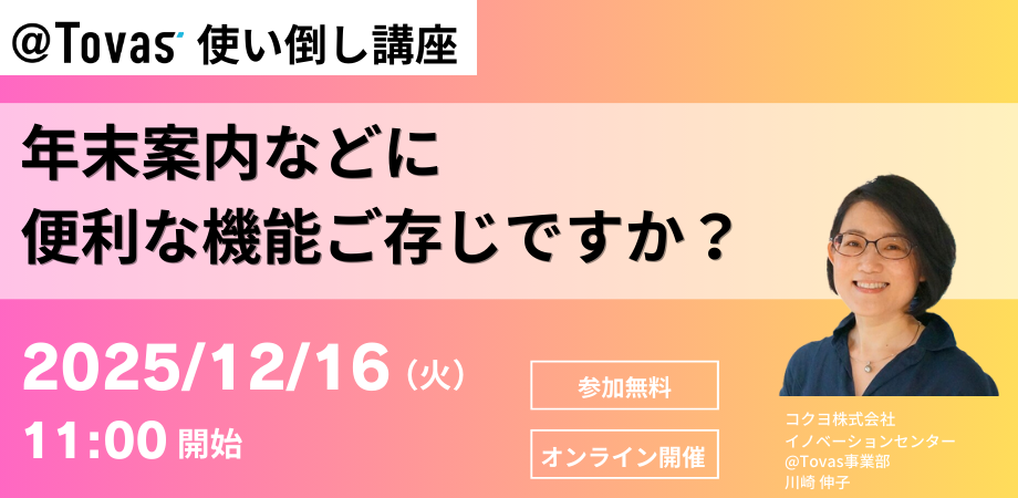 | タイトル | @Tovas使い倒し講座~年末案内などに便利な機能、ご存じですか?~ |